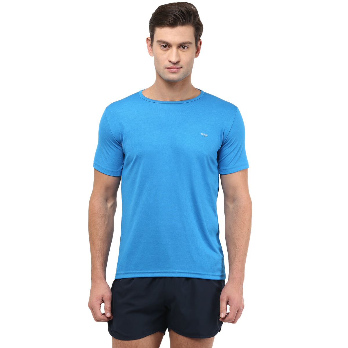Simple, smart and solid—all in one versatile T-shirt. This matte Instadry T-shirt from Berge keeps you cool, dry and comfortable through workouts, treks or casual outings. The lightweight quick-dry fabric ensures all-day freshness, while the clean silhouette pairs effortlessly with track pants, shorts or 3/4ths. Whether you're heading to the gym, exploring trails or enjoying a rainy-day walk, this T-shirt makes looking good effortless.
